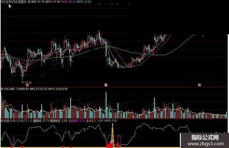 适当买入: IF(CROSS(趋势线,底部标志),100,0),COLOR0099FF,LINETHICK4;