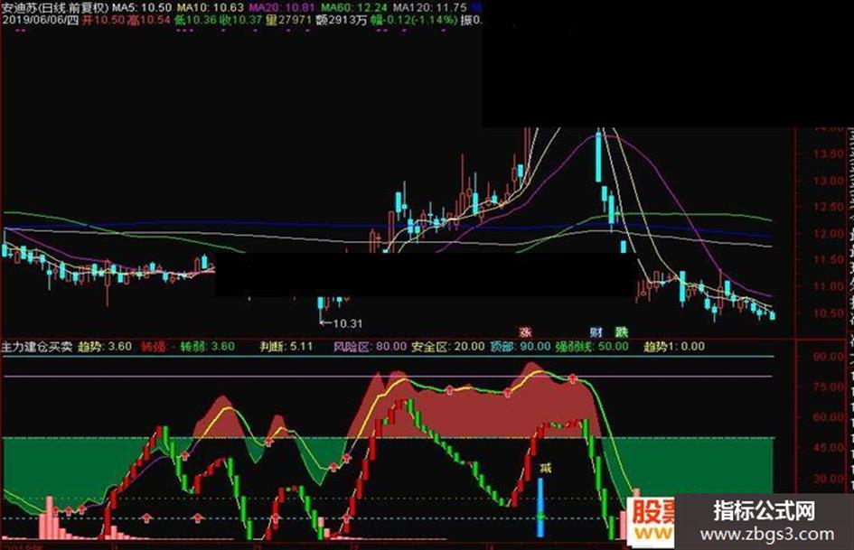 转弱:IF(趋势<50,趋势,DRAWNULL),COLORGREEN;