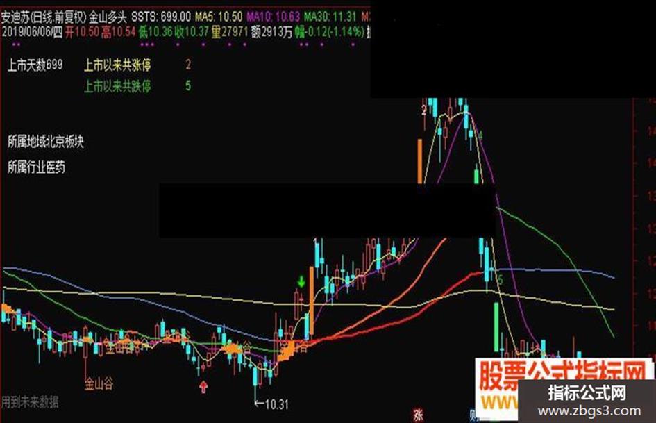 DRAWTEXT(COUNT(CROSS(MA5,MA10),21)>1 AND CROSS(MA5,MA10),L,'金山谷'),COLOR1788FF;