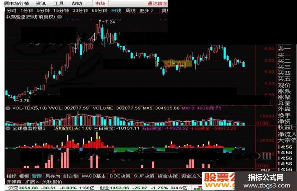 三日资金:SUM(资金收支,3),COLORWHITE,NODRAW;