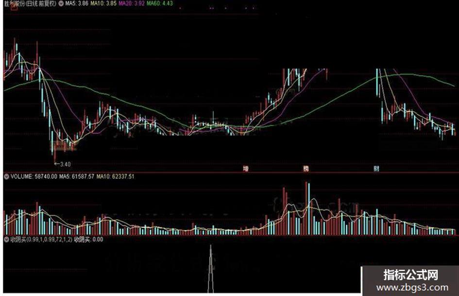 买:=IF(CROSS(M18,M2),5,0* 10000),COLORFF00FF,LINETHICK2;