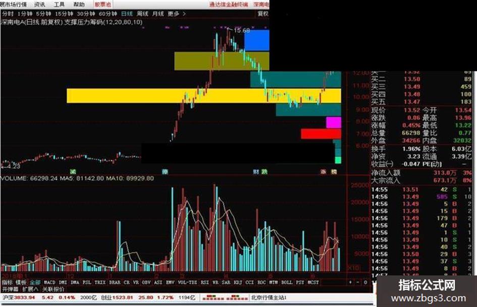 通达信支撑压力筹码主图 彩色筹码显示清晰好看