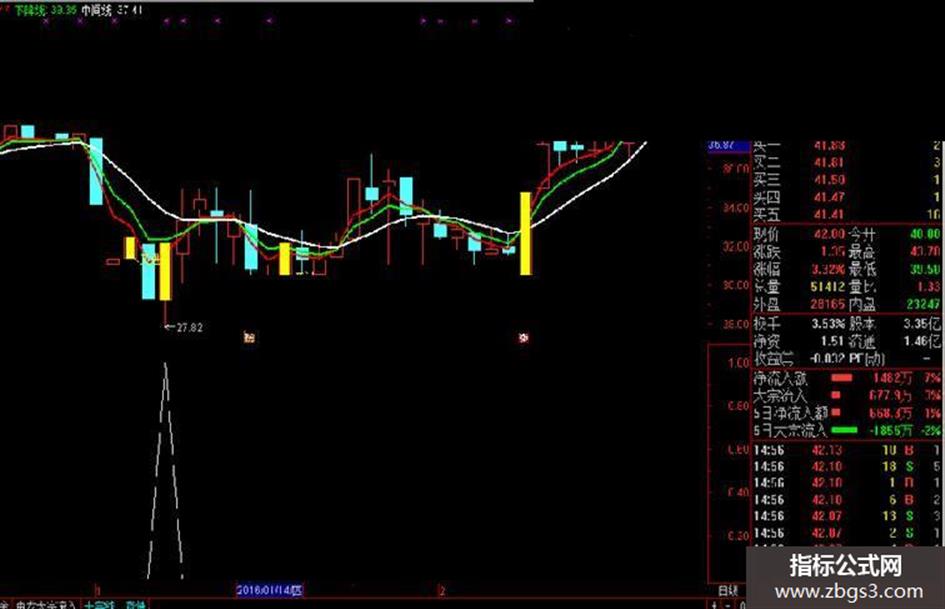 当天会有一个涨停,指标发出信号。第二天犹豫压力会出现一个十字星,逢低买入,第三天逢高卖出,稳赢5个点。牛熊均可用