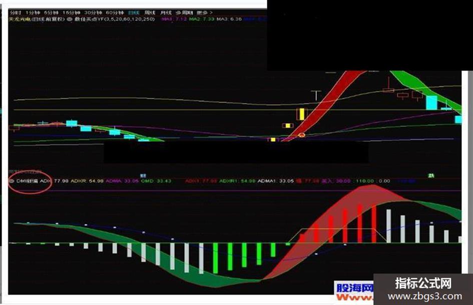 强:IF(ADX1>=ADXR1,ADX1,DRAWNULL),COLORRED,LINETHICK3;