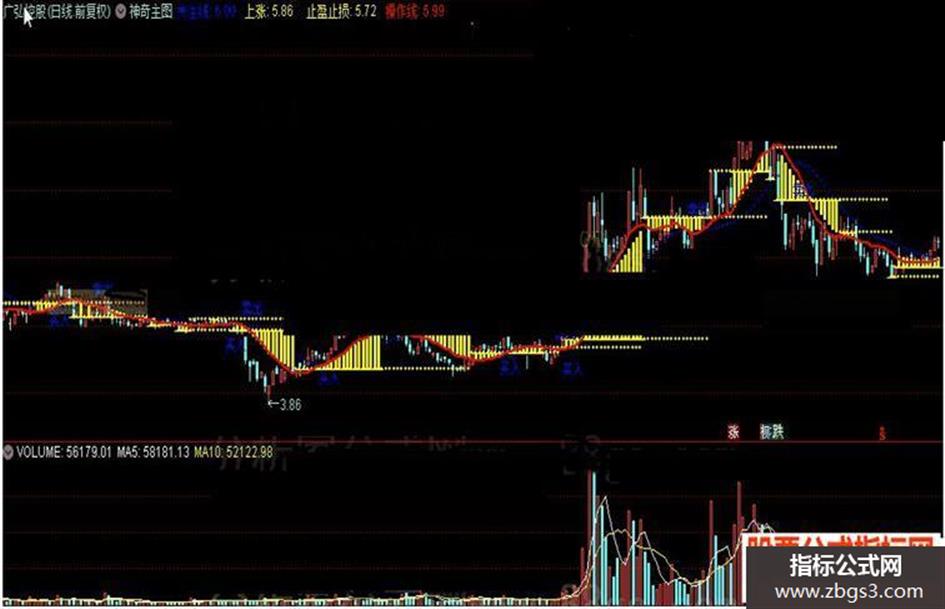 上涨:IF(CLOSE>ZARA AND CLOSE>REF(CLOSE,ZARB),REF(CLOSE,ZARB),REF(CLOSE,ZARB)),POINTDOT,LINETHICK3;