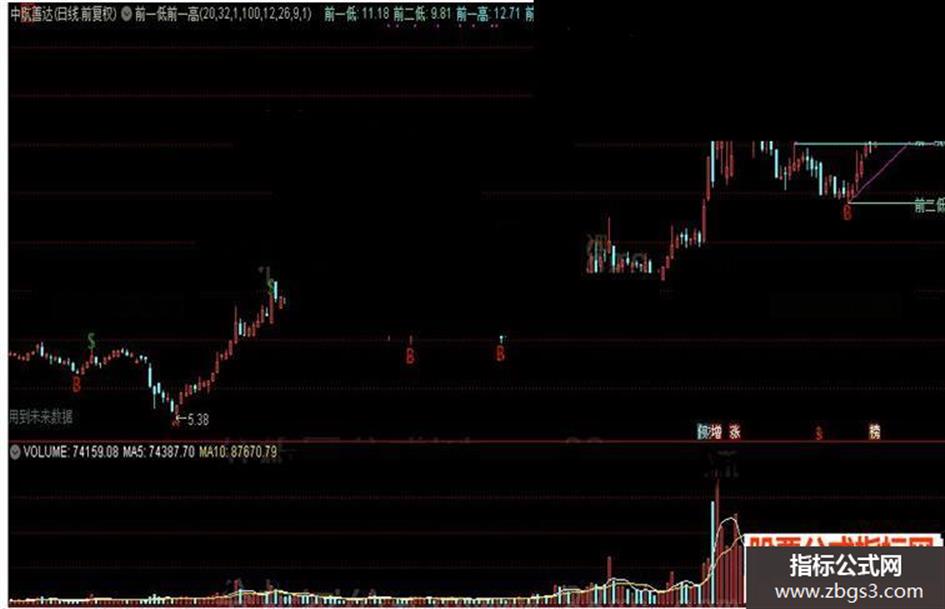 前一低:REF(L,BARSLAST(VV)),COLOR99FF66,LINETHICK1;