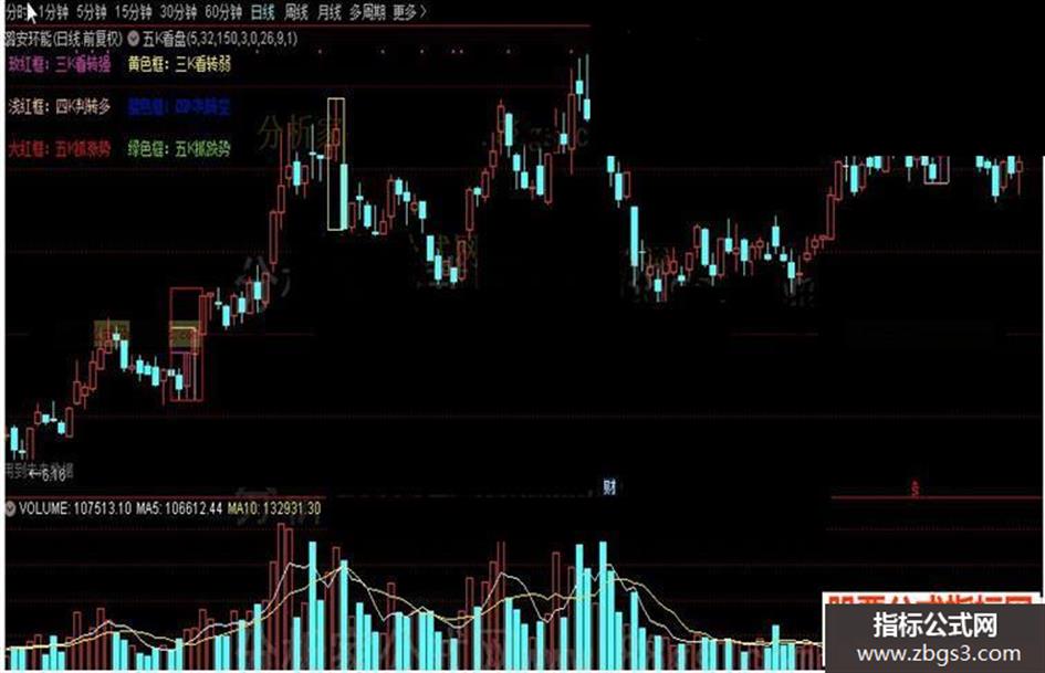 DRAWTEXT_FIX(ISLASTBAR,0.005,0.2,0,'大红框:五K抓涨势'),COLORRED;