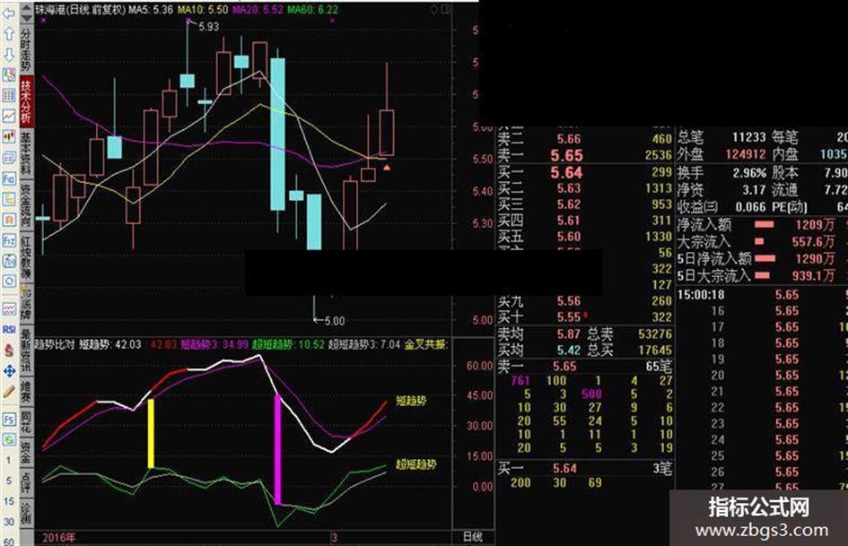 短趋势:(R1+R2+R3+R5+R4)/5,LINETHICK2;