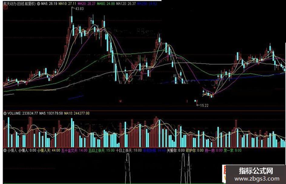 苛护你:IF(BETWEEN(BARSLAST(关爱你)+1,1,4) AND 跳空低开 AND (H-L)/ABS(C-O)>4,2,0);