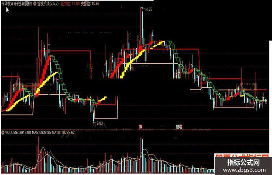 压力位:IF(CROSS(J24,J),H,REF(H,BARSLAST(CROSS(J24,J)))),COLORRED,LINETHICK2;