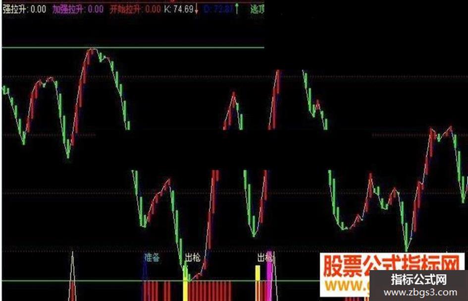 开始拉升:STICKLINE(地>天 AND 地<0,10,0,1,0)=1,COLORRED;