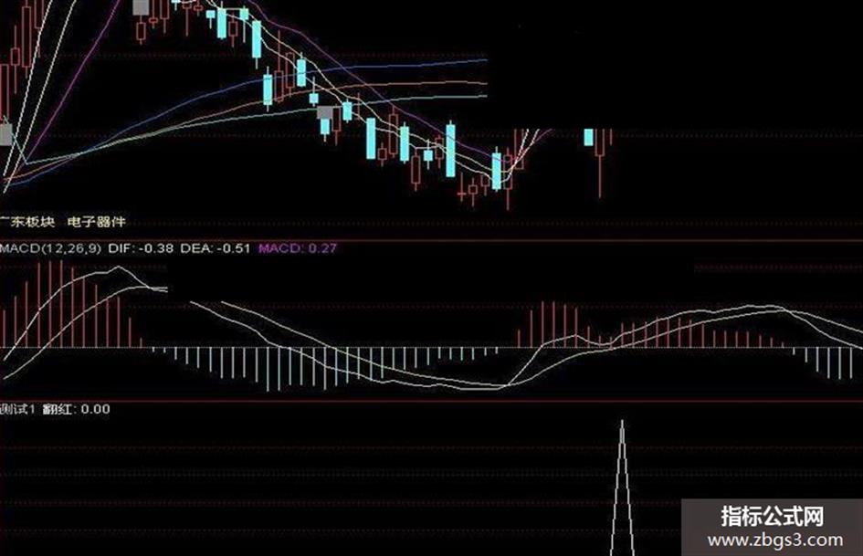 DIFF:=EMA(CLOSE,12)-EMA(CLOSE,26); DEA:=EMA(DIFF,9); MACD:=2*(DIFF-DEA); 翻红:RANGE(REF(MACD,2),REF(MACD,1),REF(MACD,3)) AND REF(MACD,1)<MACD AND RANGE(REF(MACD,1),0,0.15) AND MACD>0.05;