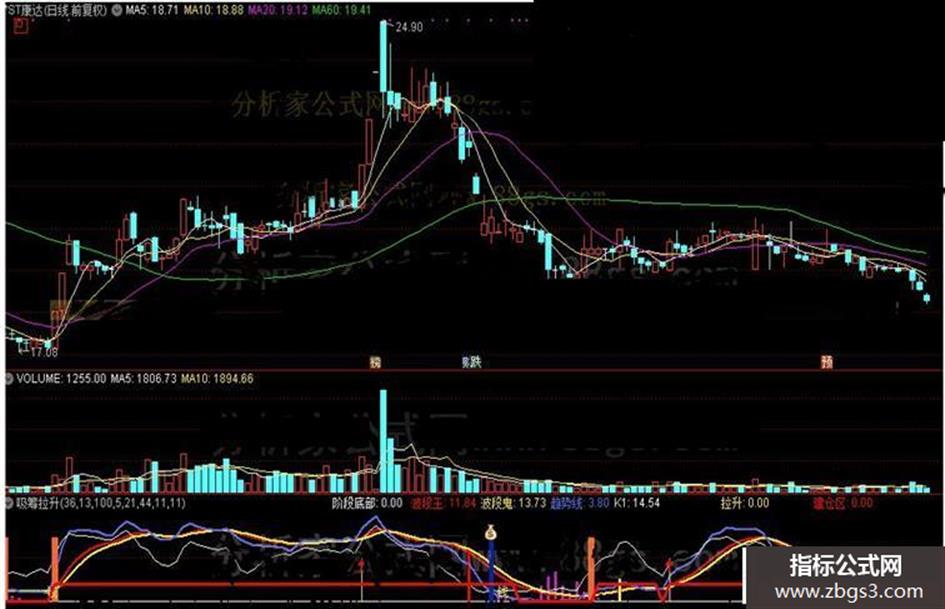 阶段底部:IF(CROSS(吸筹指标,-24),1,0), COLORFFFFFF;