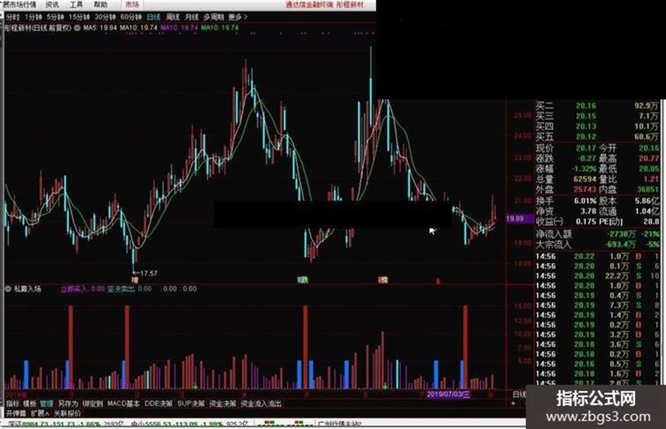 A2赋值:如果(最低价>A1),返回0,否则返回如果(最高价A3赋值:(成交量(手) / 以最低价计算的获利盘比例)