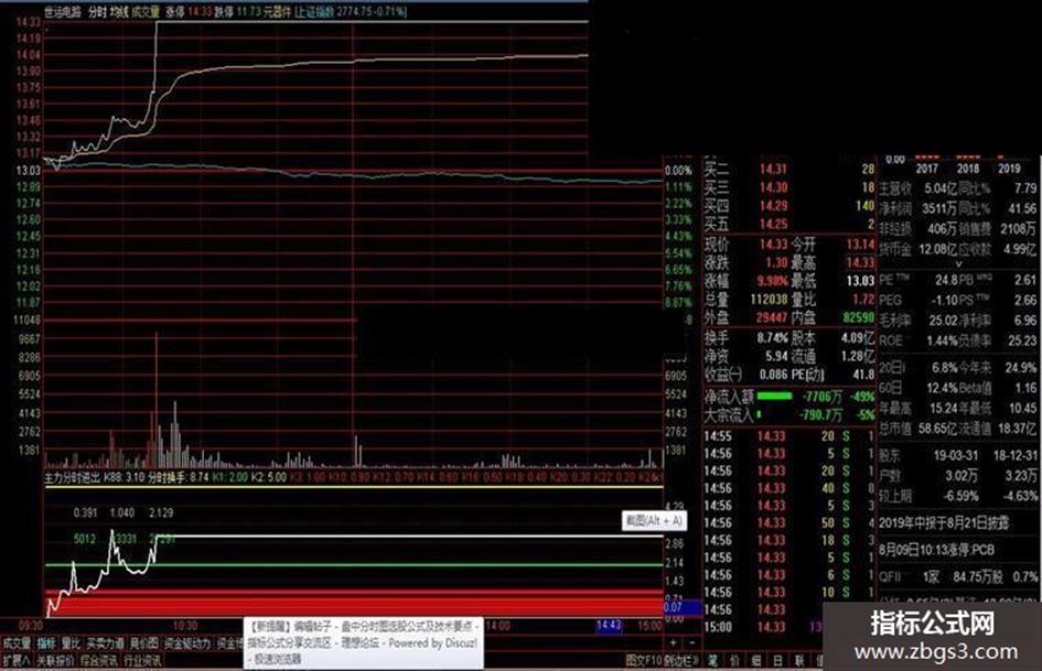 我现在重点对分时图股价一直站于均线之上的研究成果做一介绍。主力做多,实力雄厚,股价是一路走高,不惧大盘的调整与起落,从根本上体现了该股基本面向好,散发出年青人的朝气。这类股是我们重点关注的。同时结合K线的走势,日线、小时线的 J值处在60--85之间的,可以大胆介入。
