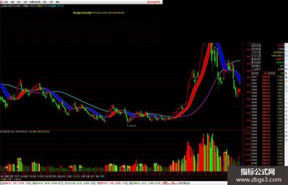 3.乾坤牛熊判定——乾坤线粉色牛市、青色熊市。