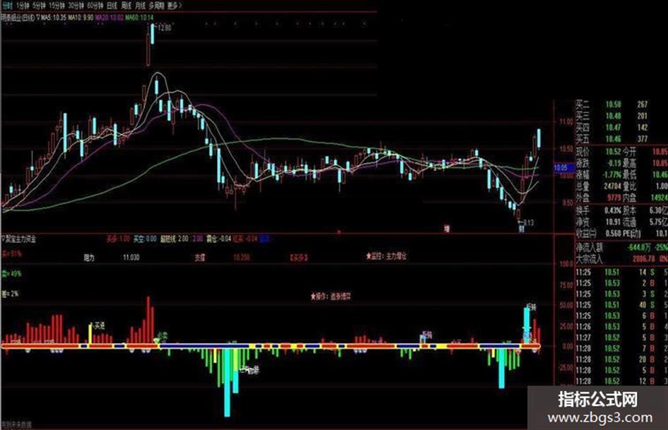通达信聚宝主力资金公式副图源码K线图