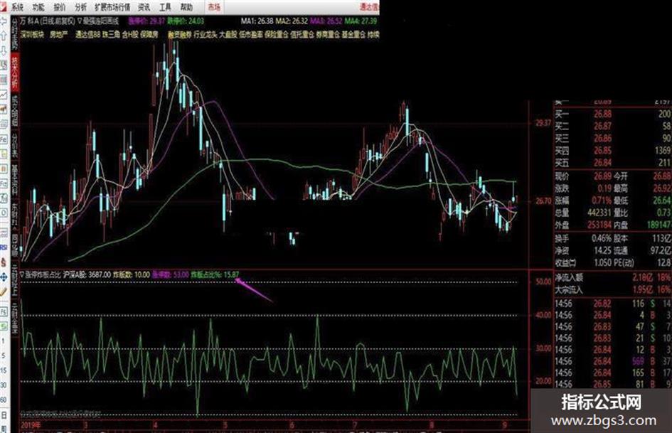 3.建立一个名为‘涨停炸版占比’的副图公式,代码: