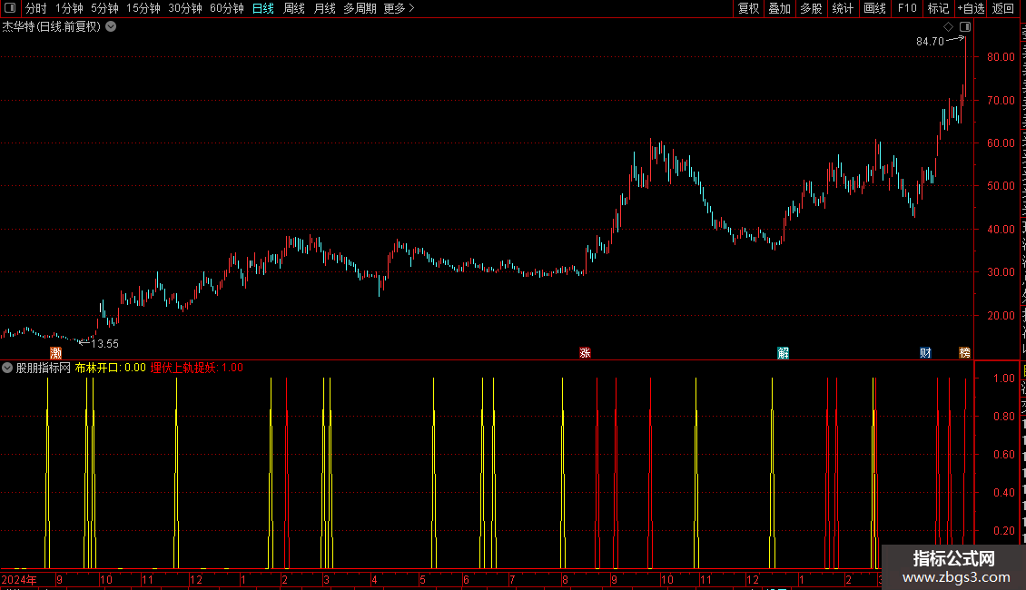 强大埋伏布林捉妖包含《埋伏布林上主》主图、《埋伏布林上副》副图、《布林开口选股》以及《埋伏布林上选》选股四个指标,注意导入时导全!