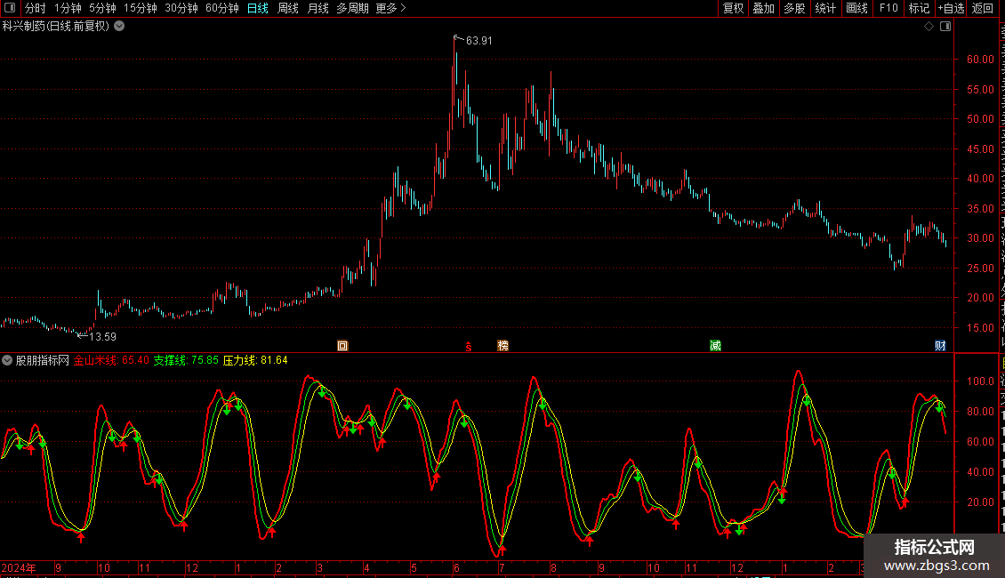 压力线:EMA(支撑线,5),COLORYELLOW;