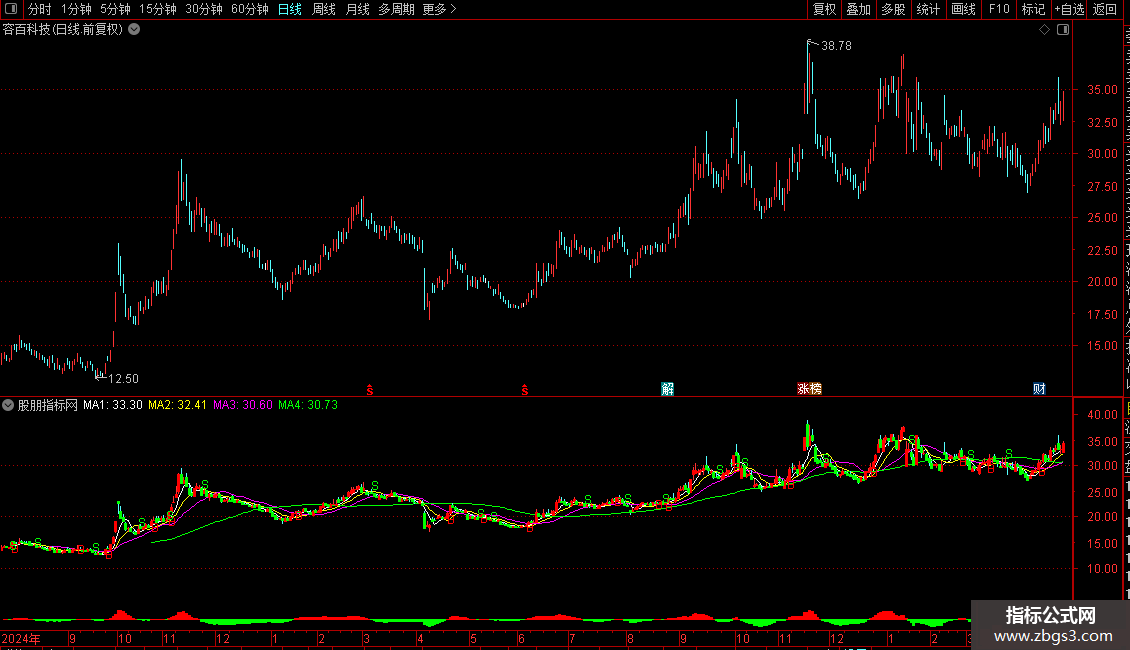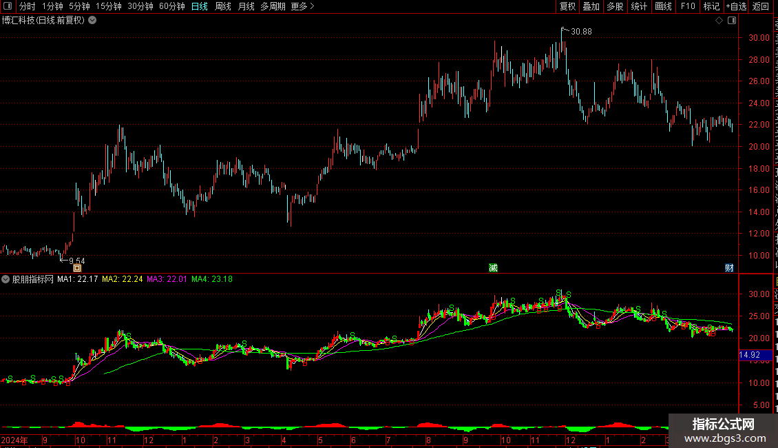 DRAWTEXT(CROSS(VAR2,VAR1),HIGH*1.02,'S'),COLORGREEN;