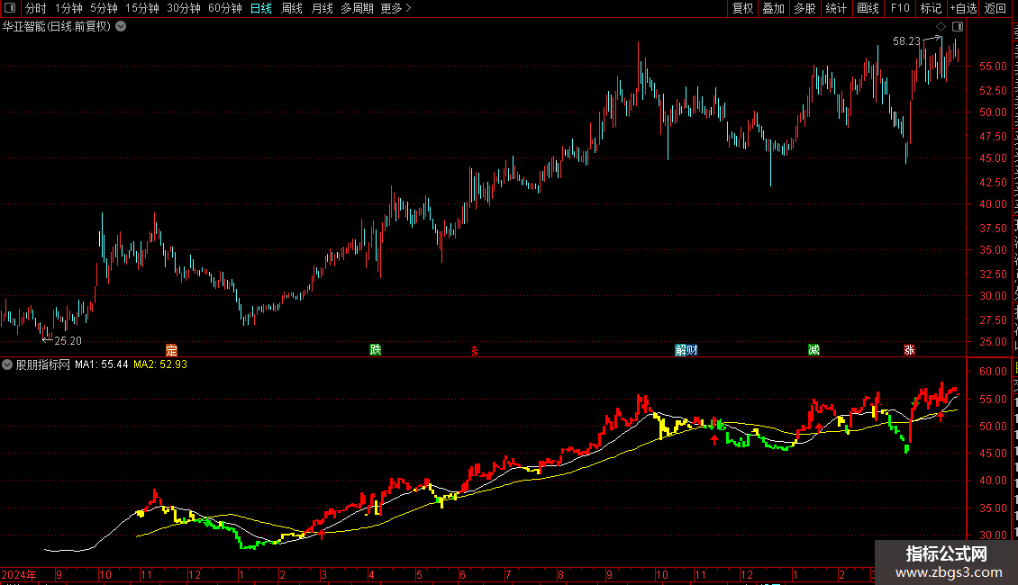 2.此版本中主要还是依托均线系统,白色为安全线22日均线,可做支撑于压力。