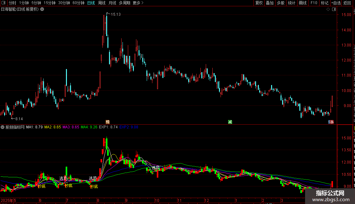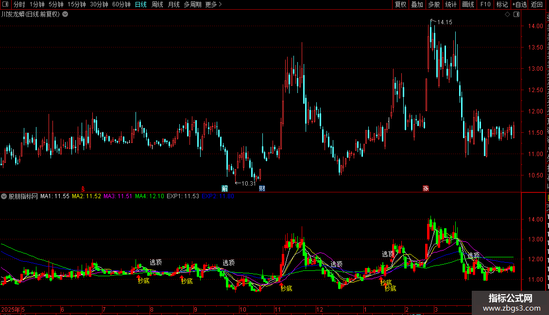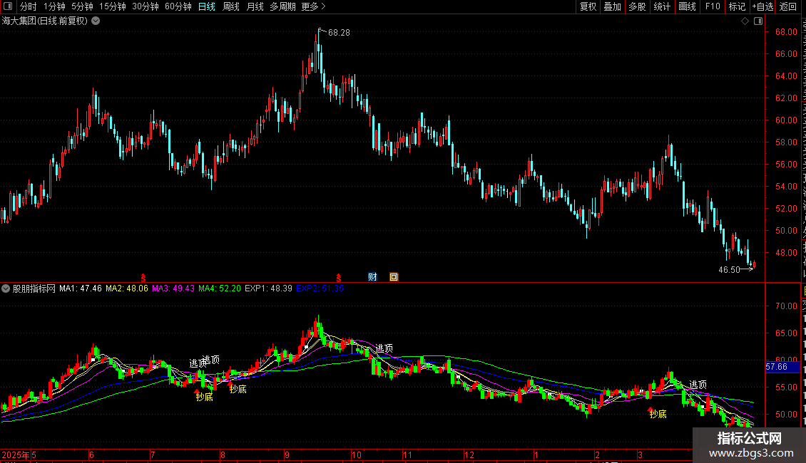 DRAWTEXT(CROSS(EXP2,EXP1),H*1.05,'逃顶'),COLORWHITE;