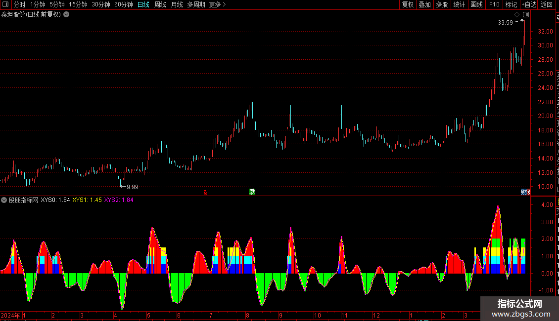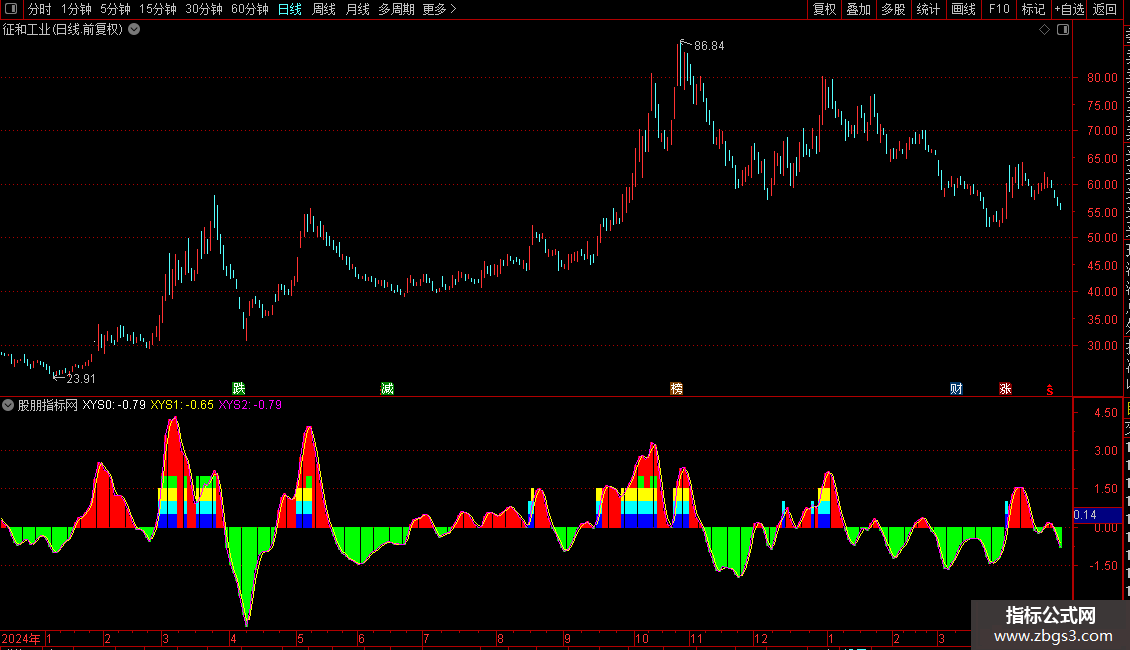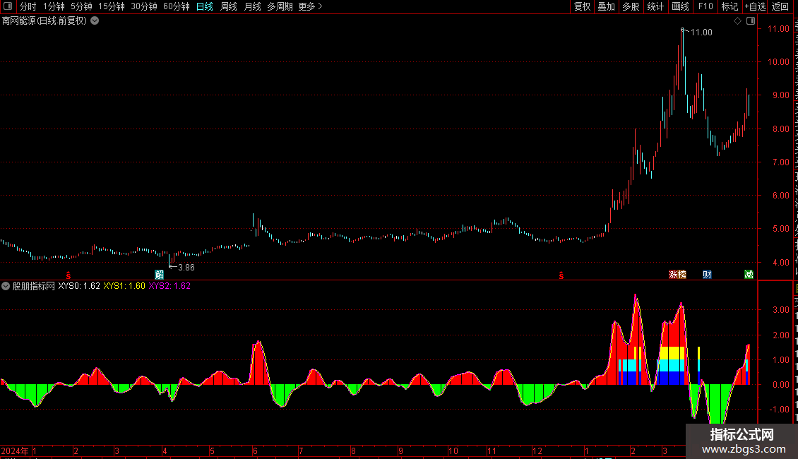 两种颜色柱状区分基本状态:绿色柱状表示个股处于短线弱势状态,红色柱状表示个股处于短线强势状态;彩色柱表示超强的非理性状态。