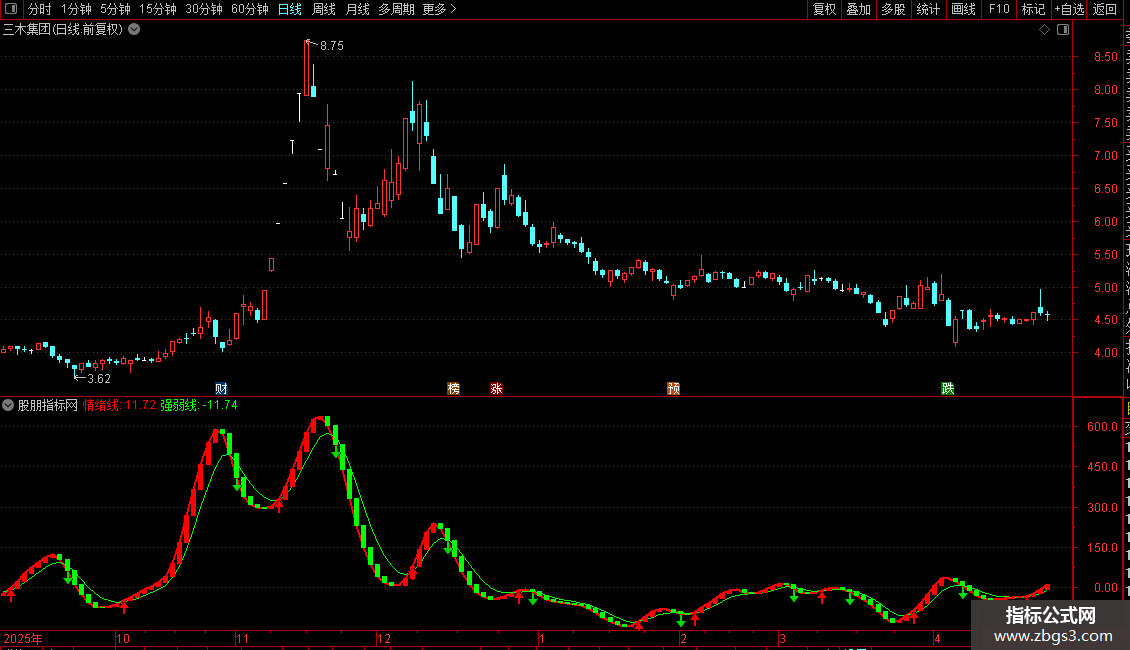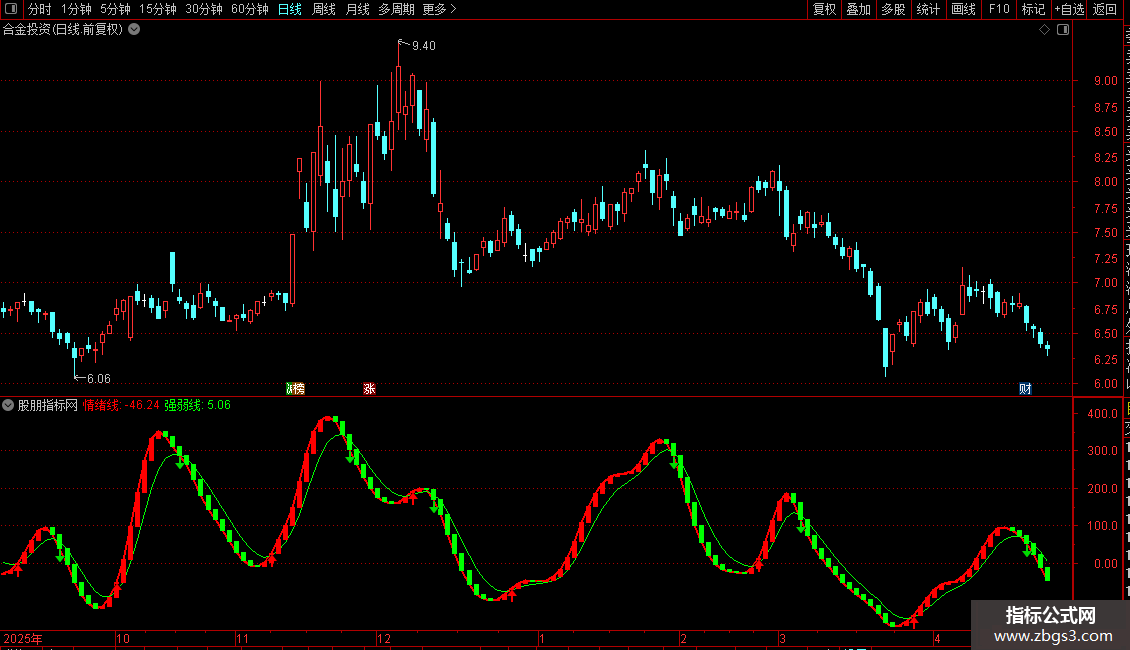 强弱线:EMA(情绪线,5),COLORGREEN;