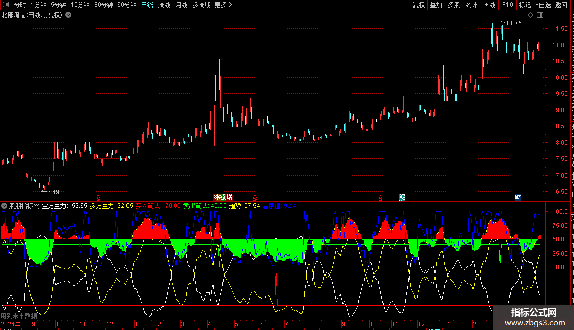 STICKLINE(趋势<50,趋势,50,2,0),COLORGREEN;