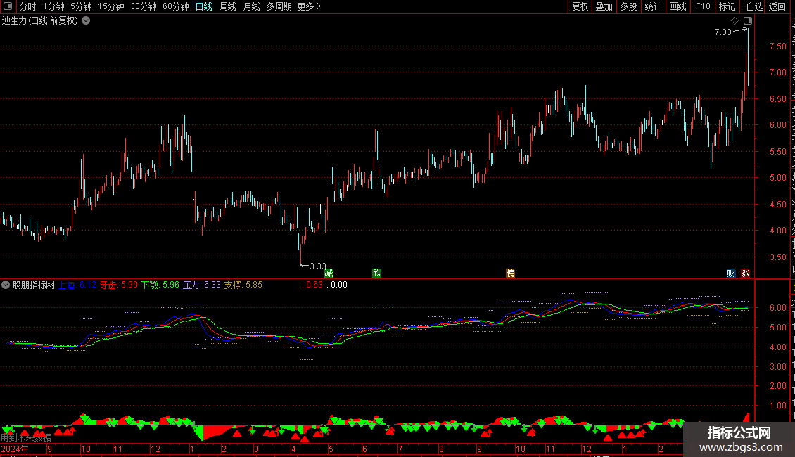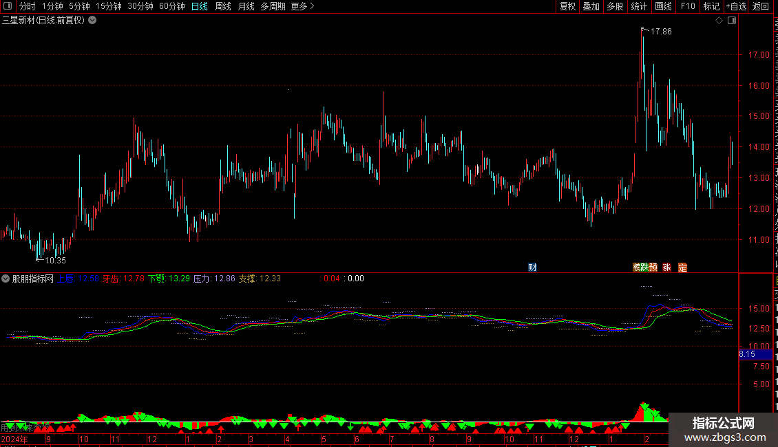 支撑: REF(LOW,BARSLAST(VAR4)), POINTDOT,COLOR3791B5;