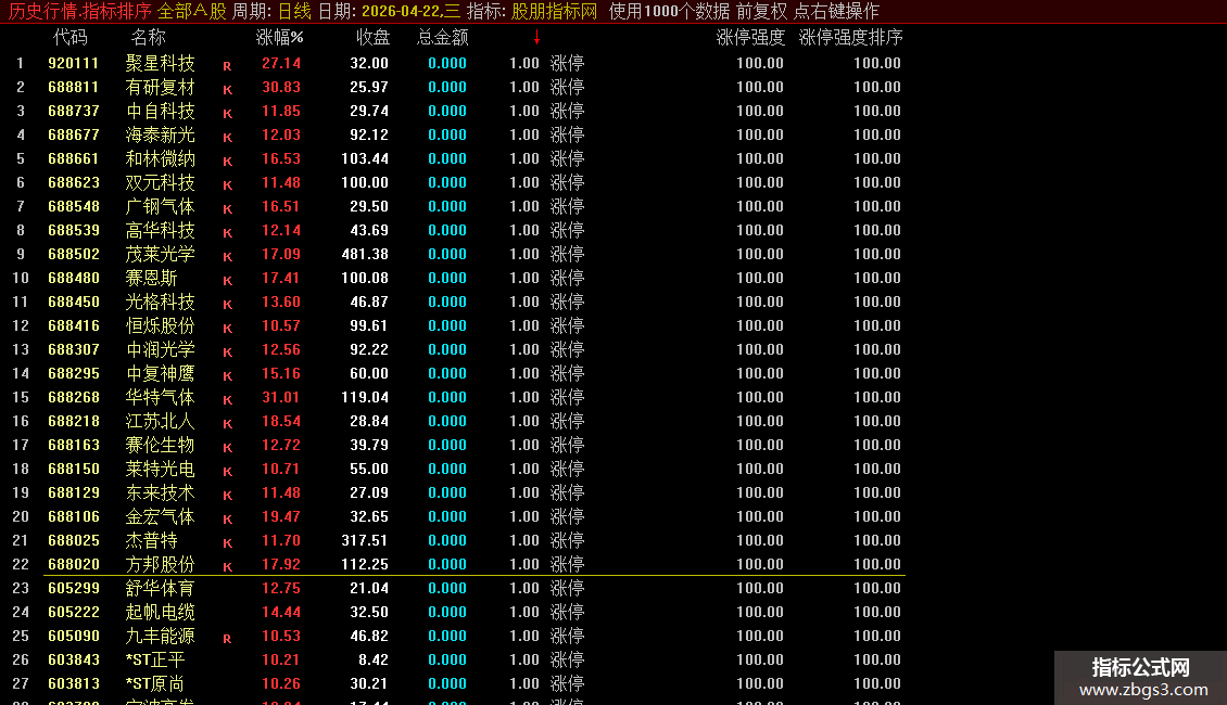 涨停强度排序:涨停强度;