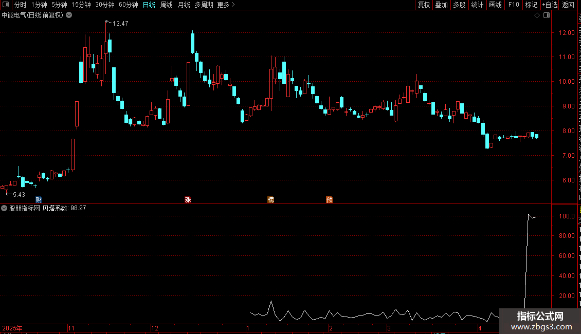 名词解释: 贝塔系数,是一种风险指数,用来衡量个别股票或股票基金相对于整个股市的价格波动情况。β系数是一种评估证券系统性风险的工具,用以度量一种证券或一个投资证券组合相对总体市场的波动性,在股票、基金等投资术语中常见。 贝塔系数是统计学上的概念,它所反映的是某一投资对象相对于大盘的表现情况。其绝对值越大,显示其收益变化幅度相对于大盘的变化幅度越大;绝对值越小,显示其变化幅度相对于大盘越小。如果是负值,则显示其变化的方向与大盘的变化方向相反;大盘涨的时候它跌,大盘跌的时候它涨。 通达信系统有自带的贝塔系数,但是反应不灵活;特分享自己的这个指标给大家学习。 使用方法:
