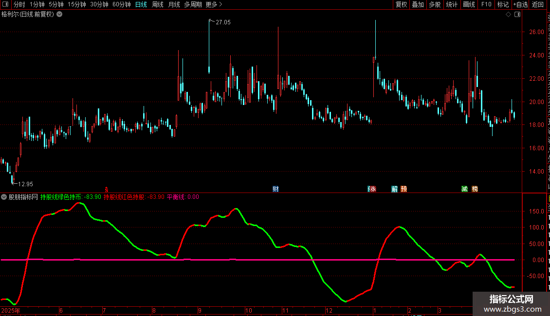 持股线绿色持币:EMA(EMA(量能,30),3)*20,COLORGREEN,LINETHICK3;