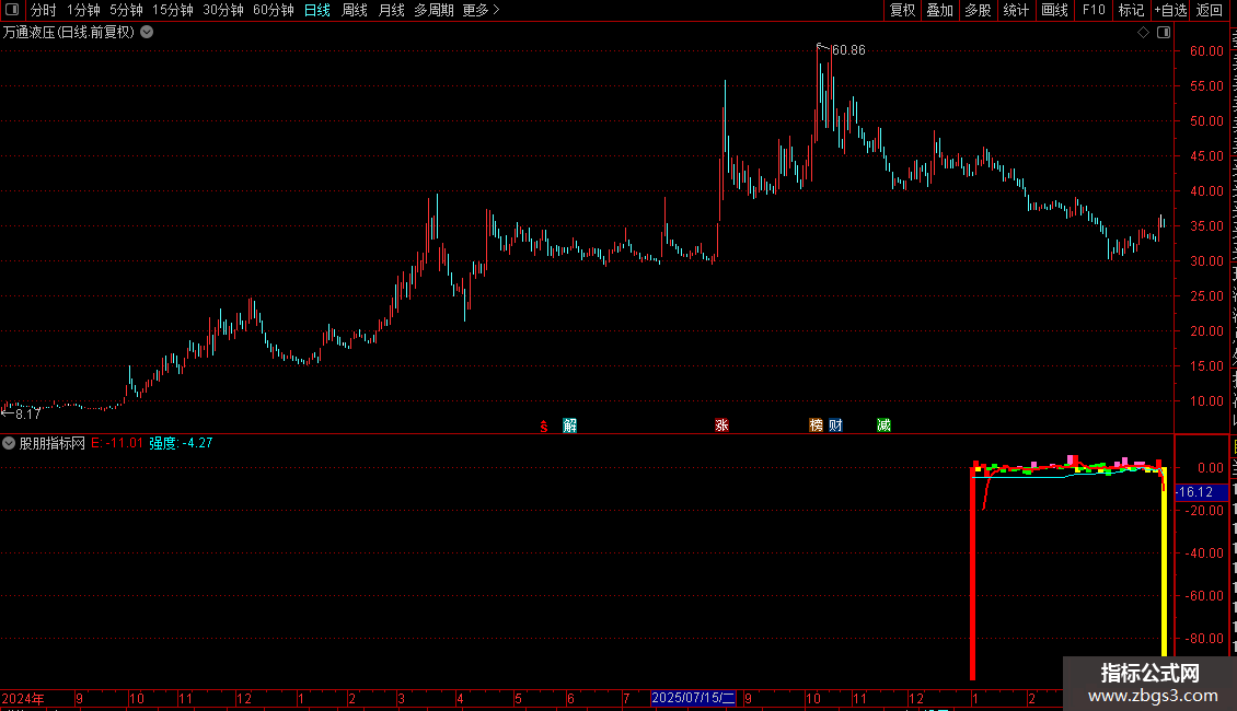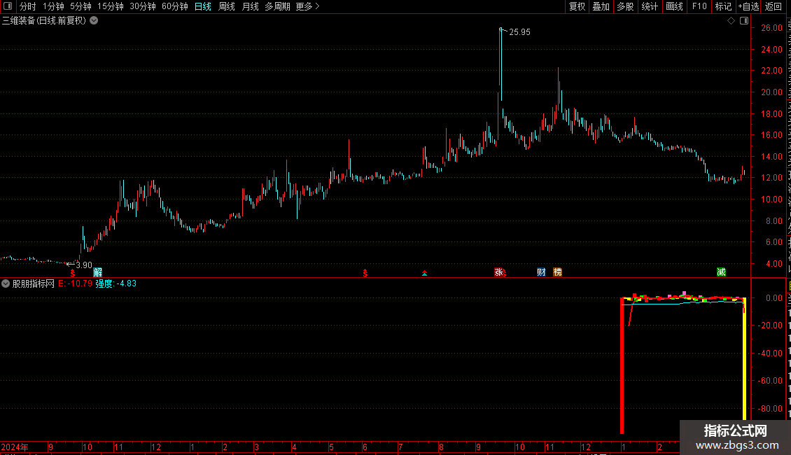 强势个股为什么能跑赢大盘,因为强势的股票一旦启动,会有上冲的惯性,趋势形成后,就会顺着趋势运行,直到现在的趋势被破坏了!因此就有了一个思路:通过个股对大盘的强度对比,来探讨个股的强弱,抓连续涨停走妖的可能性。注:本指标来源于网络。