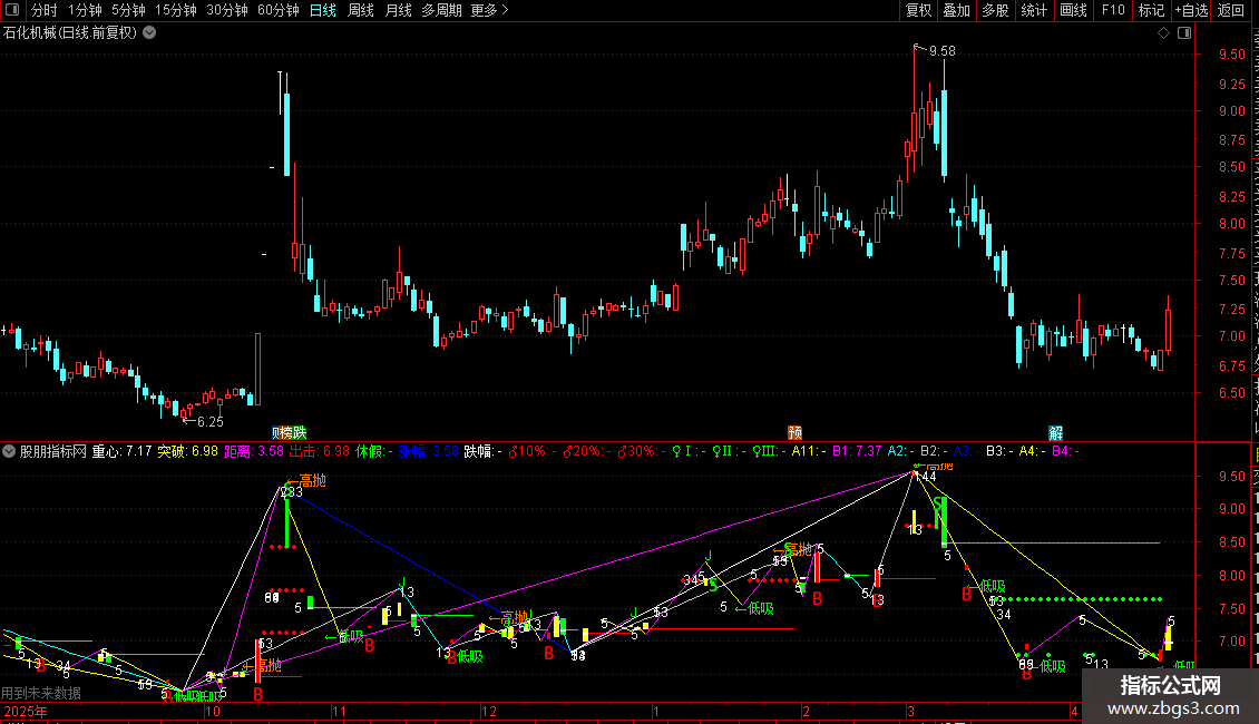 ZJ赋值:0.618*1日前的SJ+0.382*SJ的2日加权移动平均