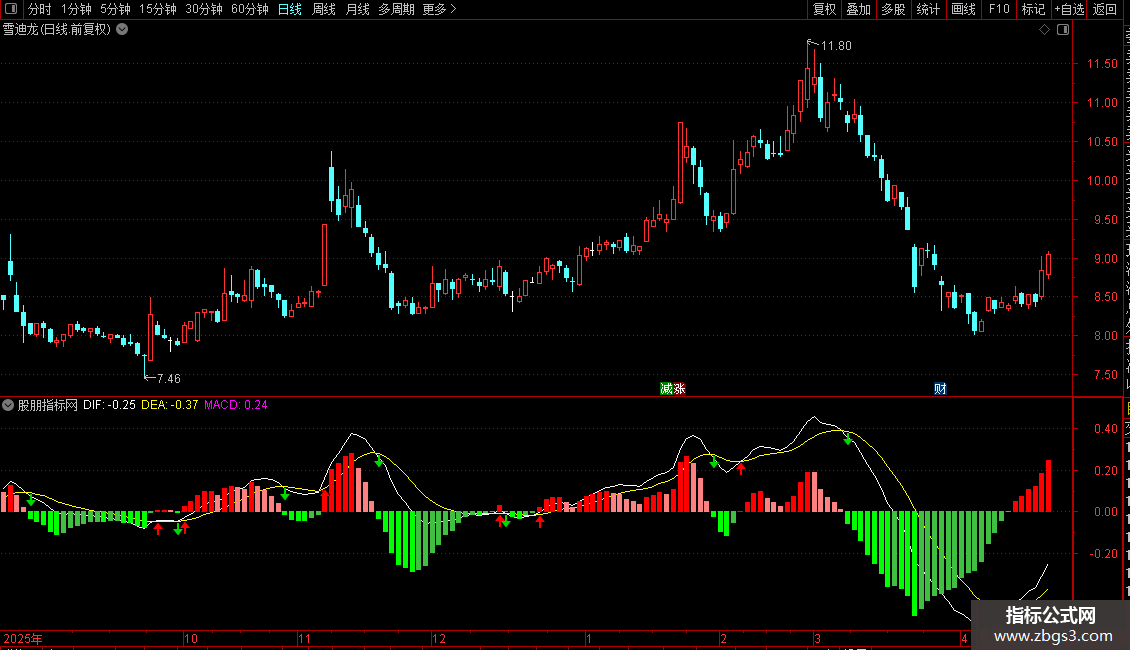 MACD在O轴之下是趋势向下;MACD在O轴之上是趋势向上。MACD和O轴的关系往往为我们抓涨停提供胜算参考。MACD从高位跌落在O轴企稳意味着这是一个潜在的大牛股,看图买卖有参考价值。