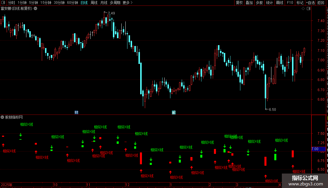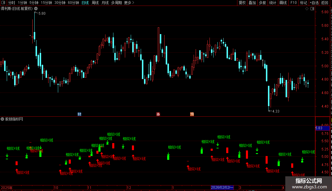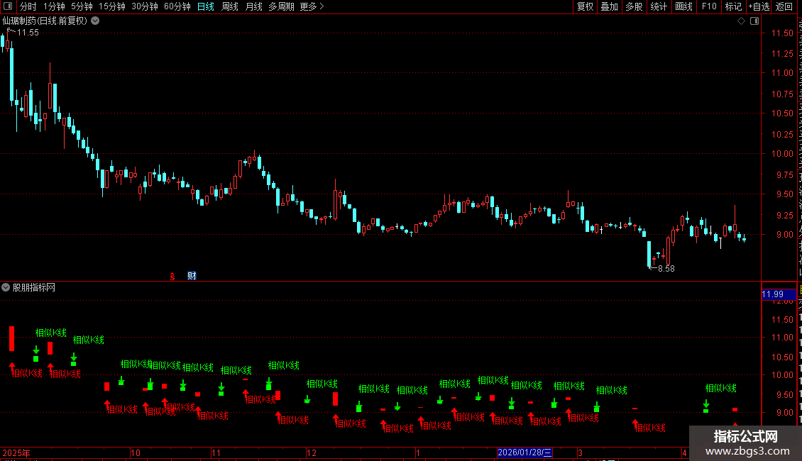 DRAWTEXT(VAR20,HIGH*1.05,'相似K线'),COLORGREEN;