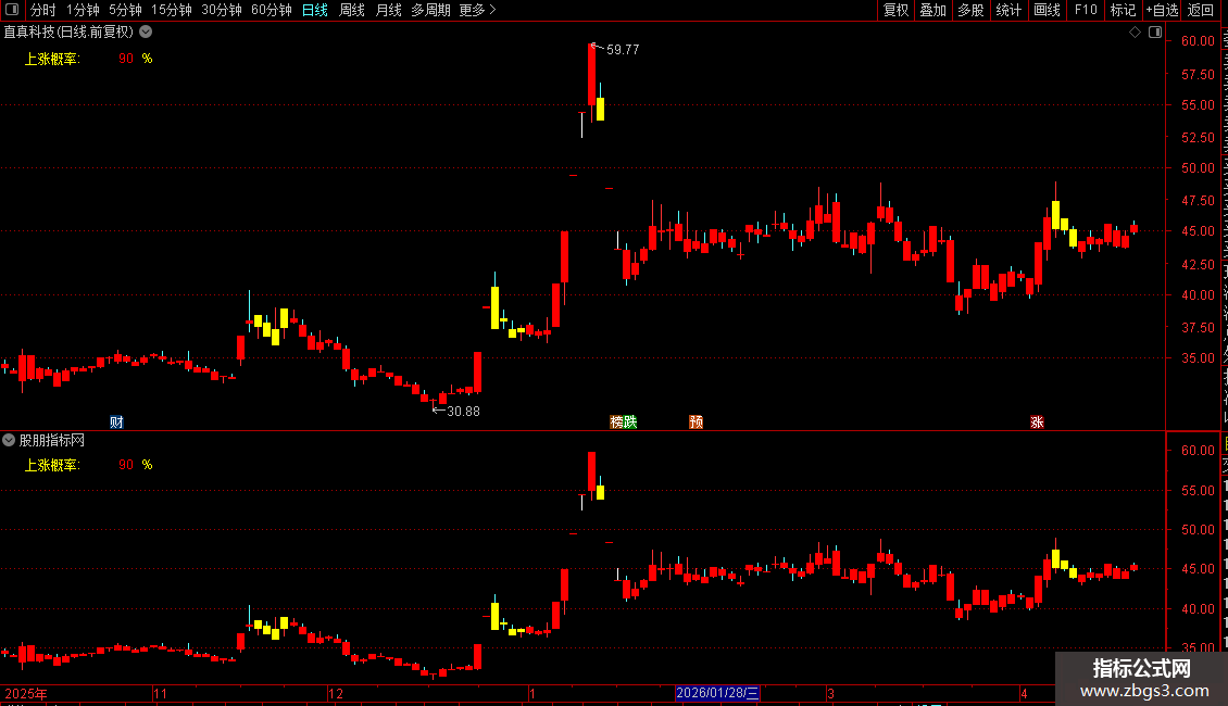 DRAWTEXT_FIX(1,0.02,0.02,0,'上涨概率:'),COLORYELLOW;