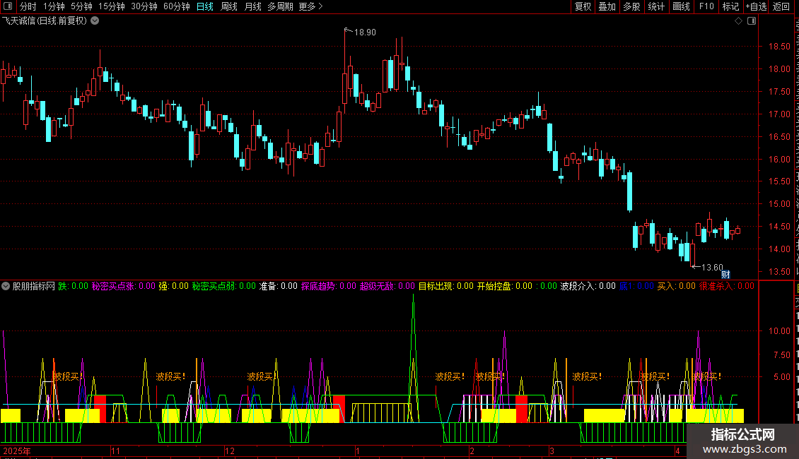 波段介入:IF(A2<19,4.5,0),COLORWHITE;