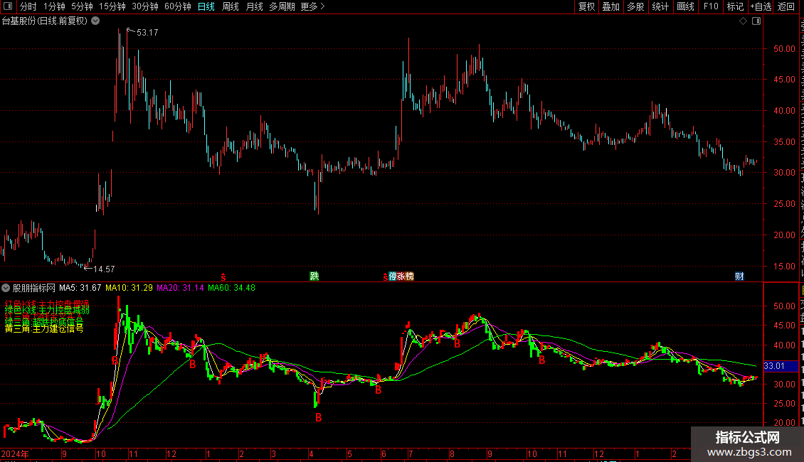 DRAWTEXT_FIX(1,0.005,0.14,0,'绿三角:超跌抄底信号'),COLORGREEN;