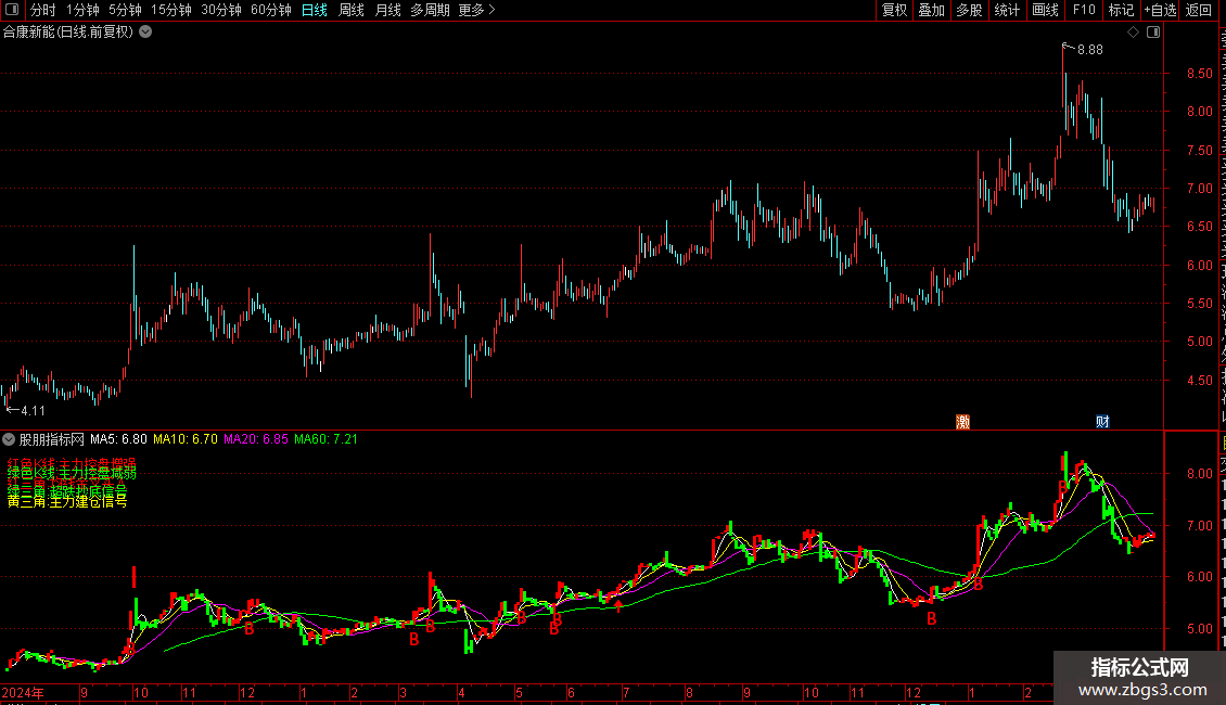 DRAWTEXT_FIX(1,0.005,0.10,0,'红三角:均线金叉买入'),COLORRED;