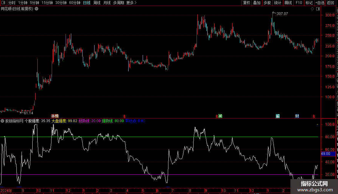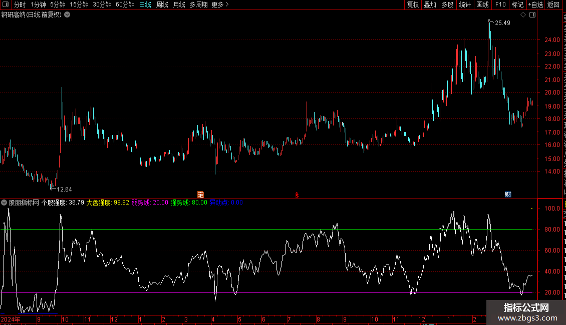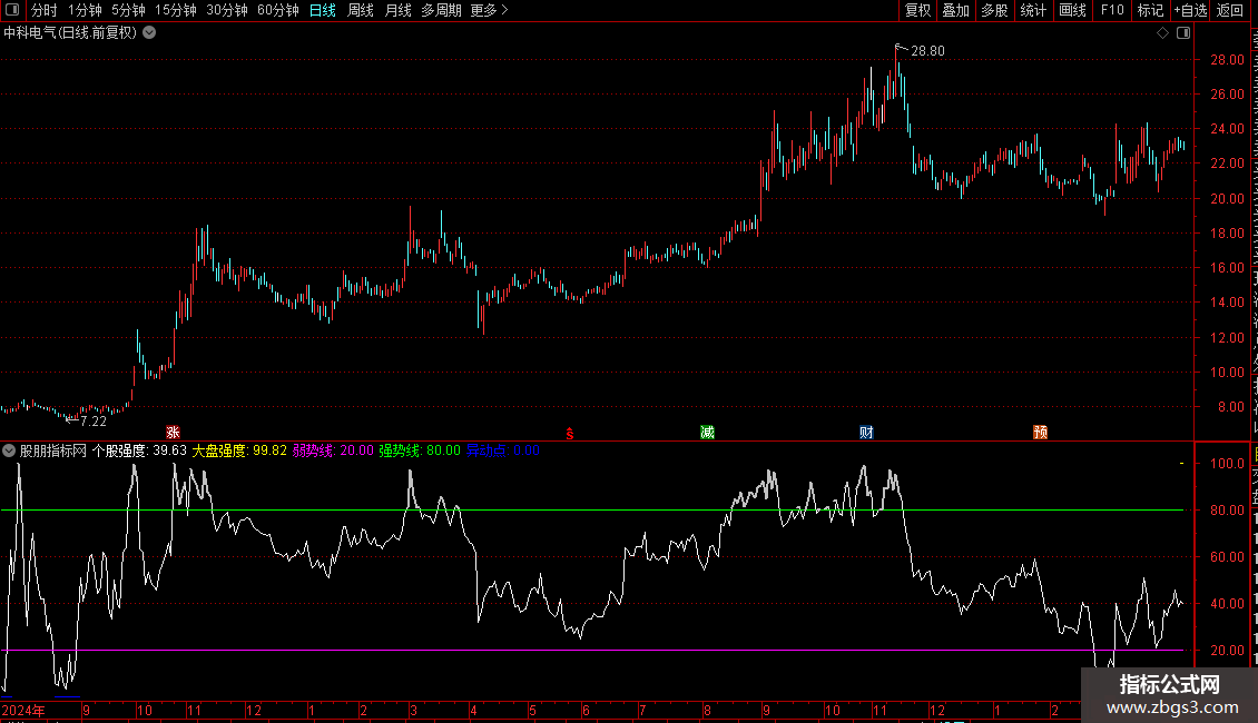 IF(个股强度>=80,个股强度,DRAWNULL),LINETHICK2;