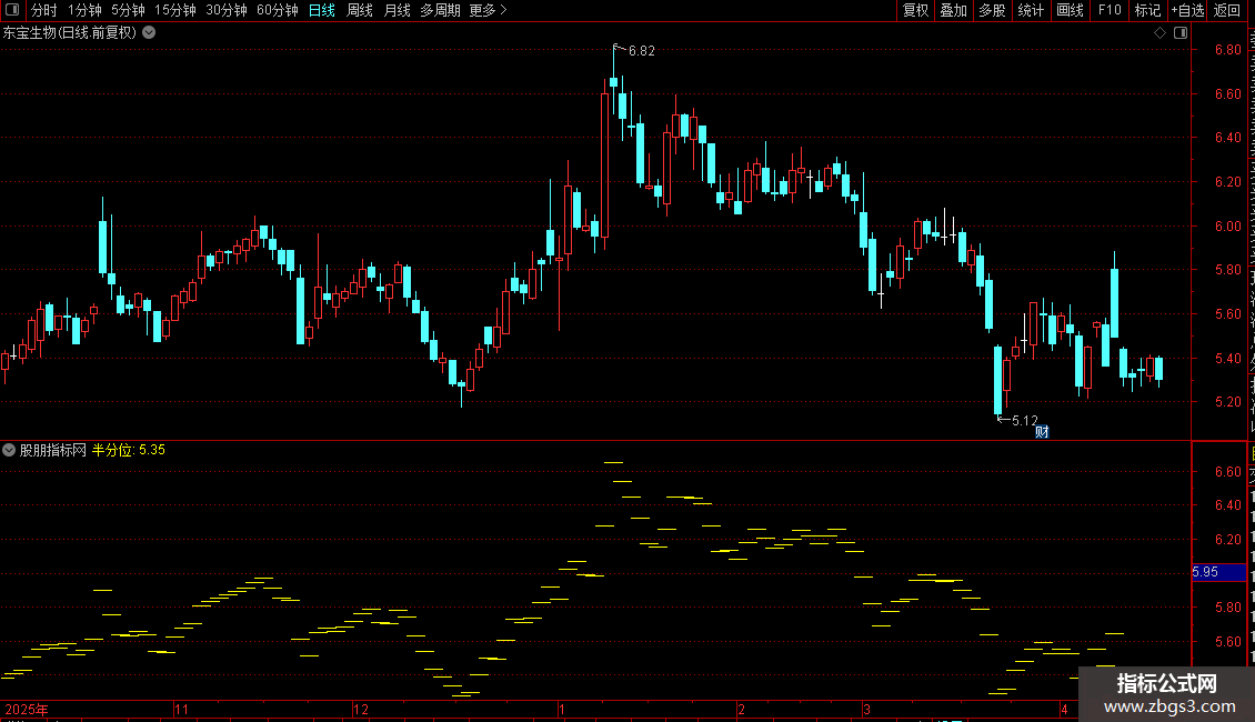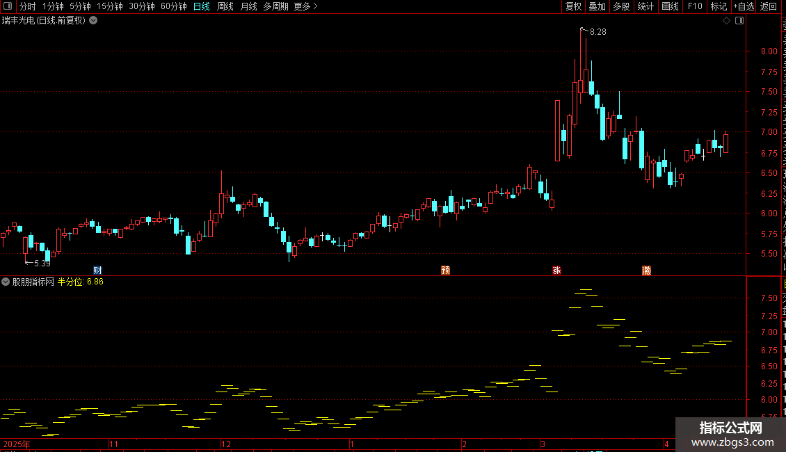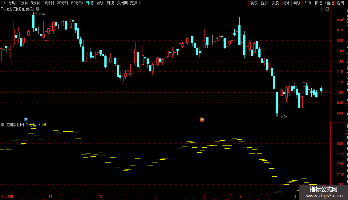 半分位:(MIN(OPEN,CLOSE)+(MAX(OPEN,CLOSE)-MIN(OPEN,CLOSE))/2),NODRAW,COLORYELLOW;