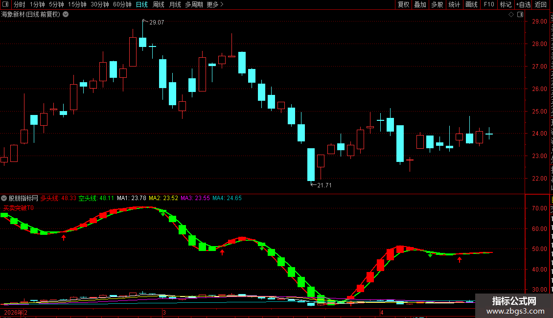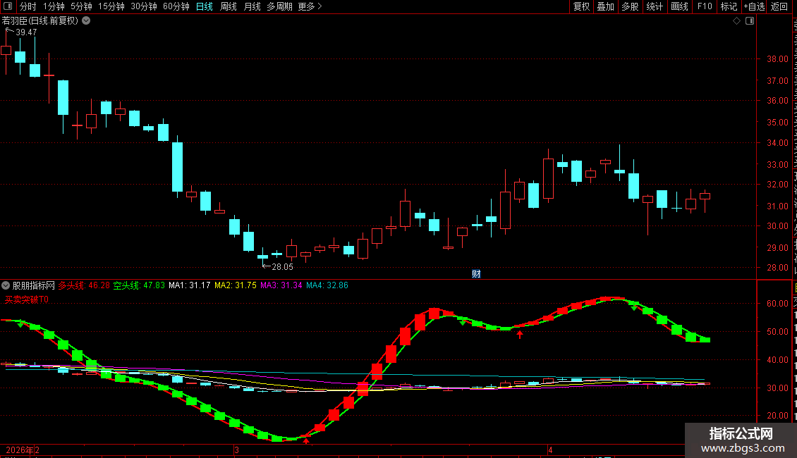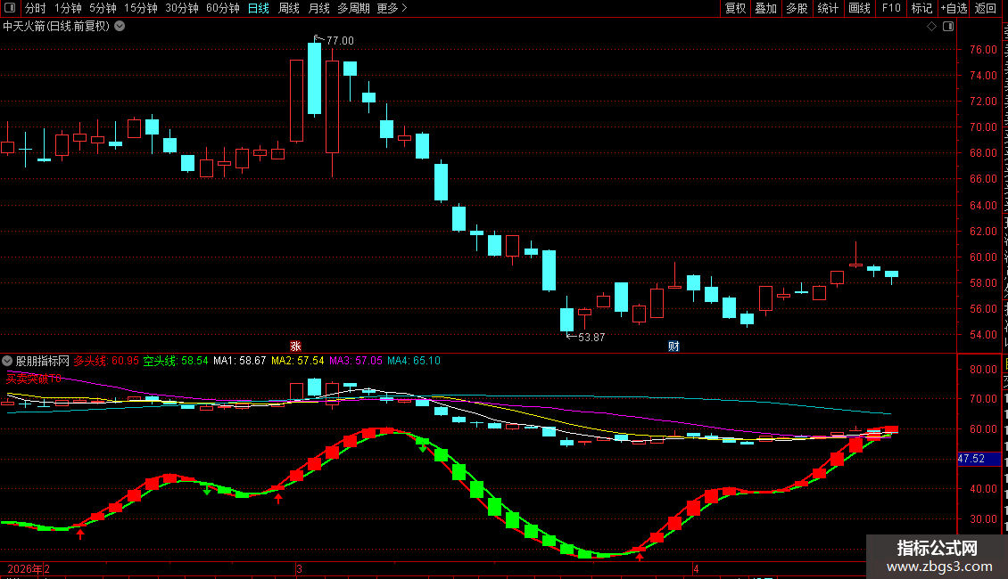 多头线:EMA(VAR3,5),COLORRED,LINETHICK2;