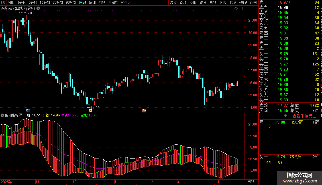 DRAWKLINE(上轨,下轨,中轨,快线);