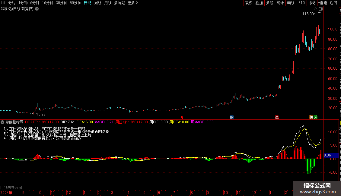 DRAWTEXT_FIX(1,0.01,0.16,0,'4、周线MACD的具体数值看上方,这才是是正确的'),COLORWHITE;