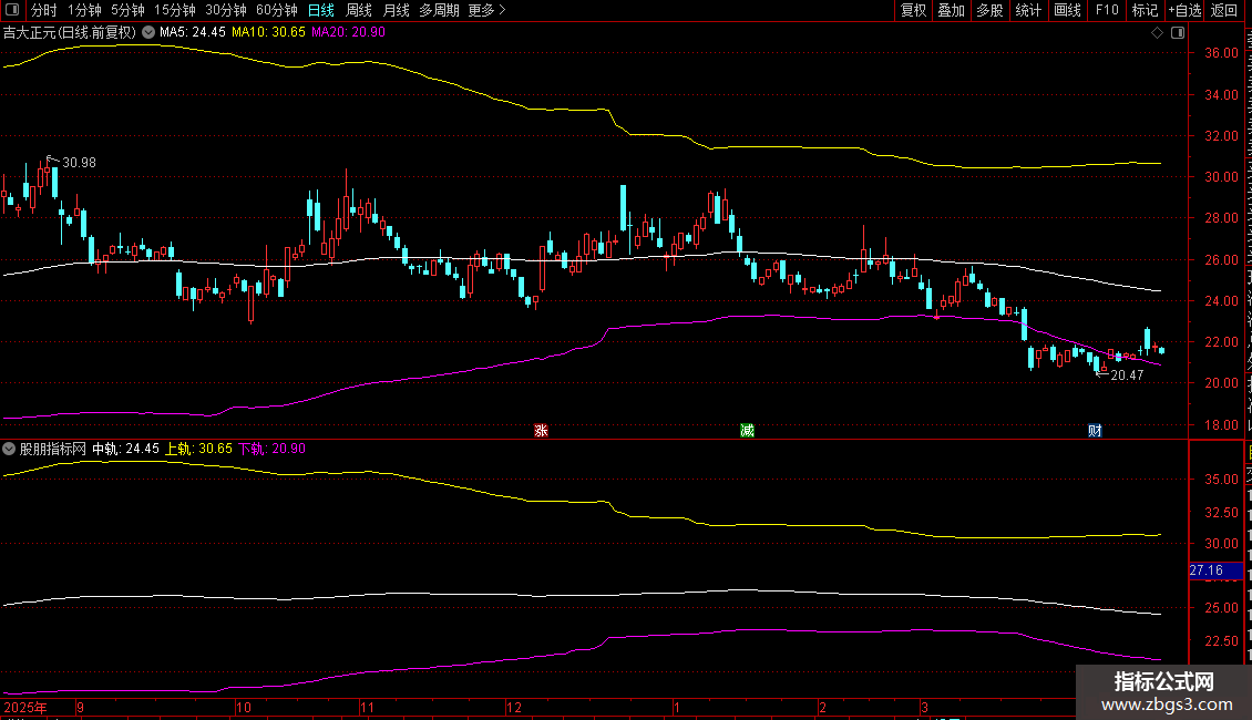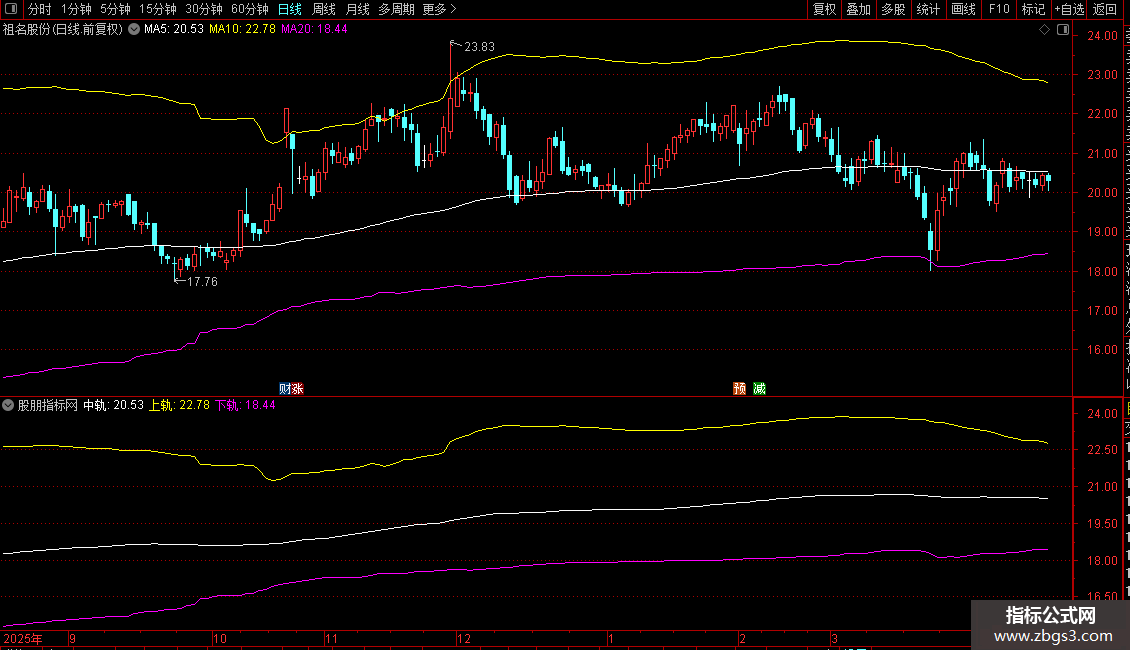 通达信三条轨道线,股价站上中轨可关注,突破上轨可跟进
