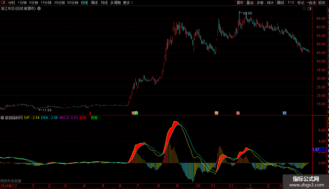底背离:REF(CLOSE,A1+1)>CLOSE AND DIF>REF(DIF,A1+1) AND CROSS(DIF,DEA);