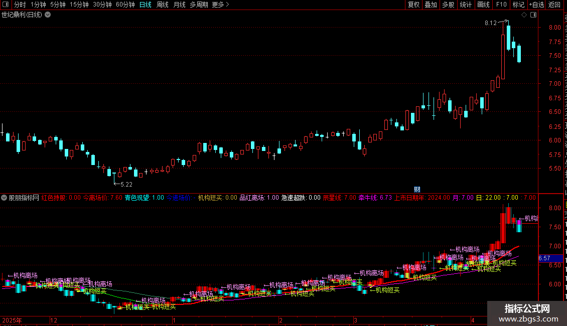 DRAWTEXT(品红离场,REF(CLOSE,1)+0.1,'←机构离场'),COLORFF99FF;